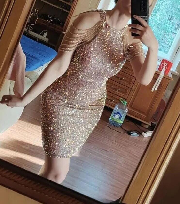 Nie czekaj! Zainwestuj w Cekinową Sukienkę Mini Z Paskami Na Ramionach i zabłyśnij na swoim następnym wyjściu!