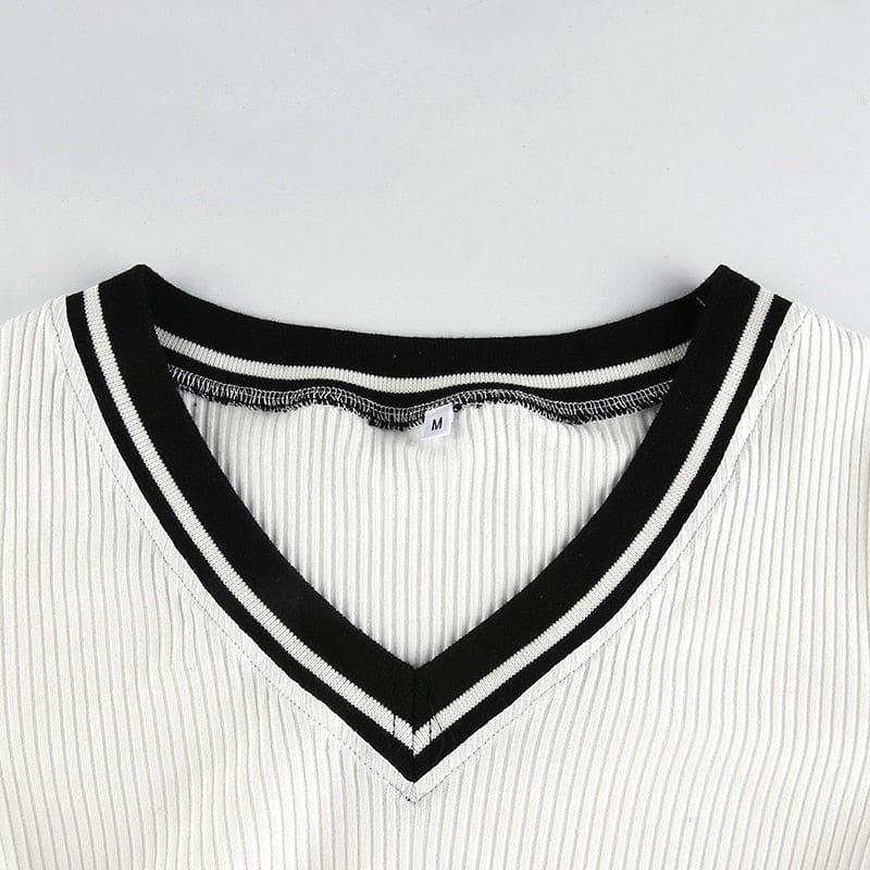 Idealny dla odważnych kobiet, Krótki T-shirt W Serek to must-have w każdej garderobie. Nie czekaj dłużej, zamów już dziś i dodaj odrobinę odwagi do swojego stylu!