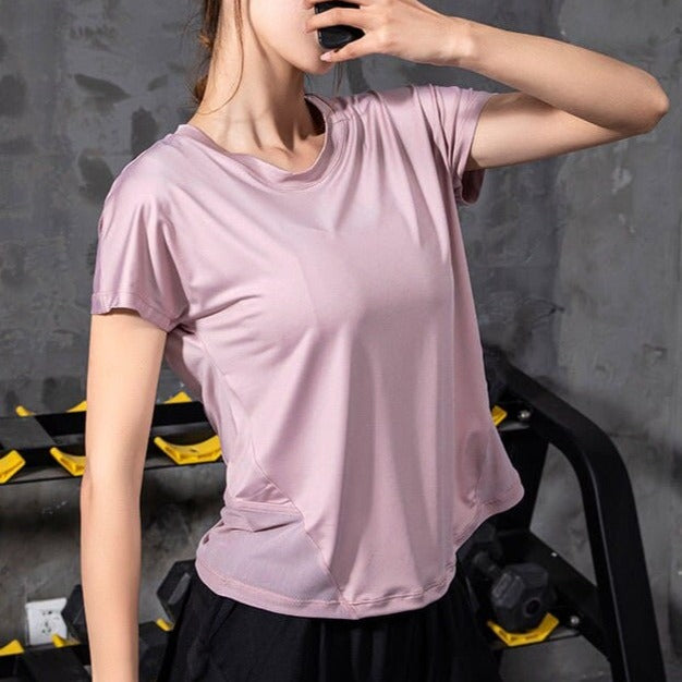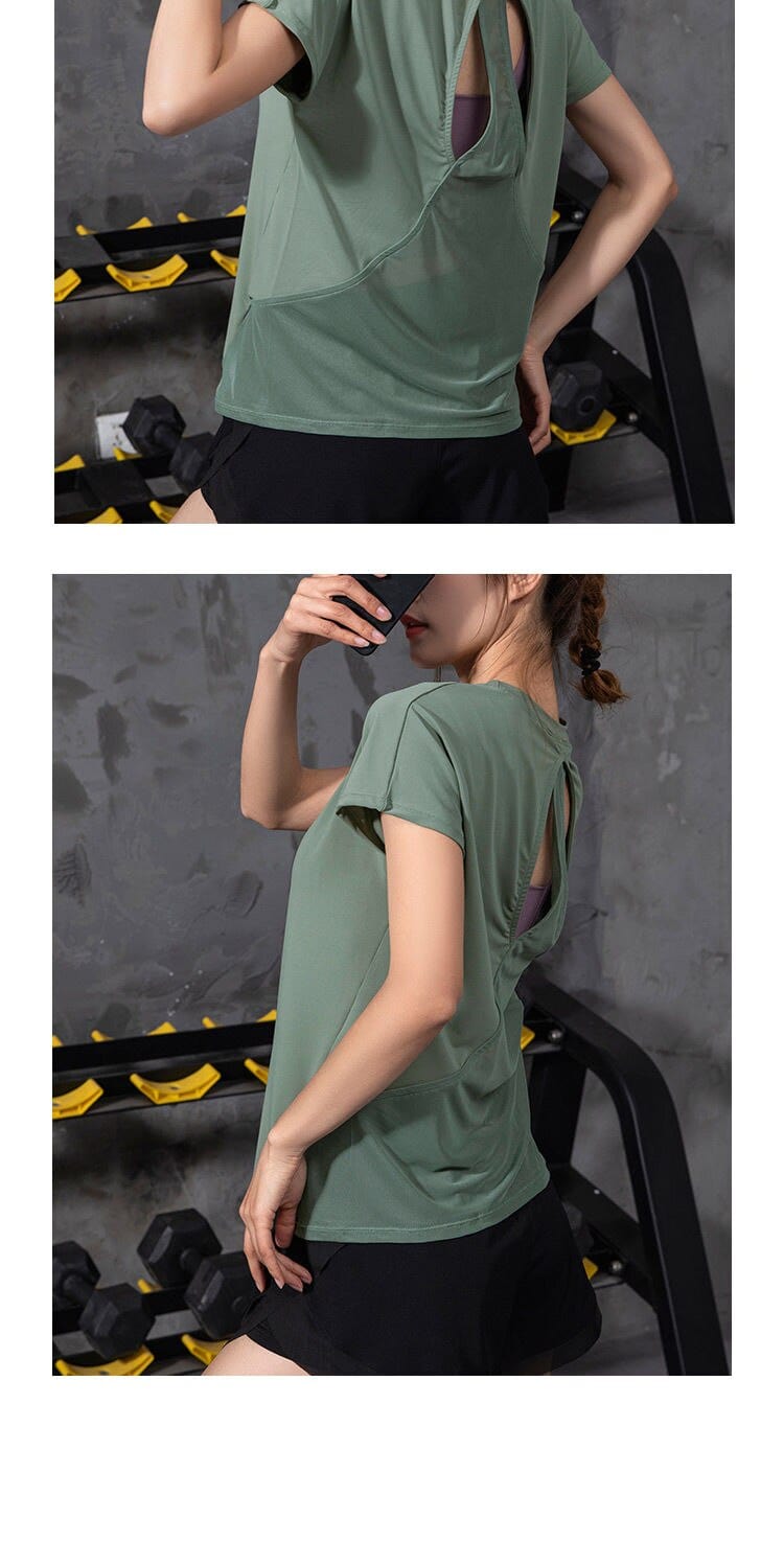 Nie czekaj! Dodaj Sportowy Top Z Krótkim Rękawem I Rozcięciem Na Plecach do swojego treningowego zestawu i poczuj różnicę podczas każdego ruchu. Zamów już dziś w Faylise!