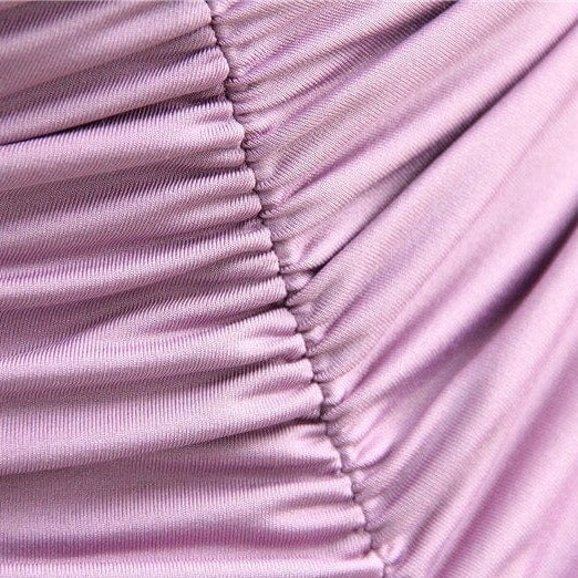 Drapowaniem na całej długości, które idealnie modeluje figurę,