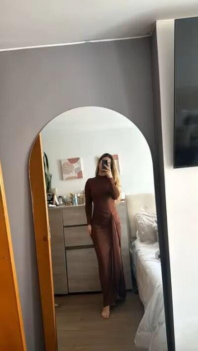 Głębokie rozcięcie po boku wprowadza odrobinę zmysłowości,