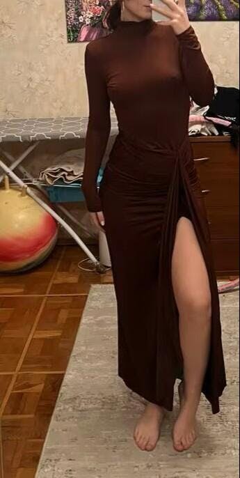 Odkryj Sukienkę Z Wysokim Rozcięciem I Golfem w sklepie Faylise – idealny wybór na eleganckie wyjścia i przyjęcia. Ta długa, zmysłowa sukienka łączy w sobie elegancję i komfort, dzięki wysokiej jakości materiałowi, który doskonale dopasowuje się do sylwetki.